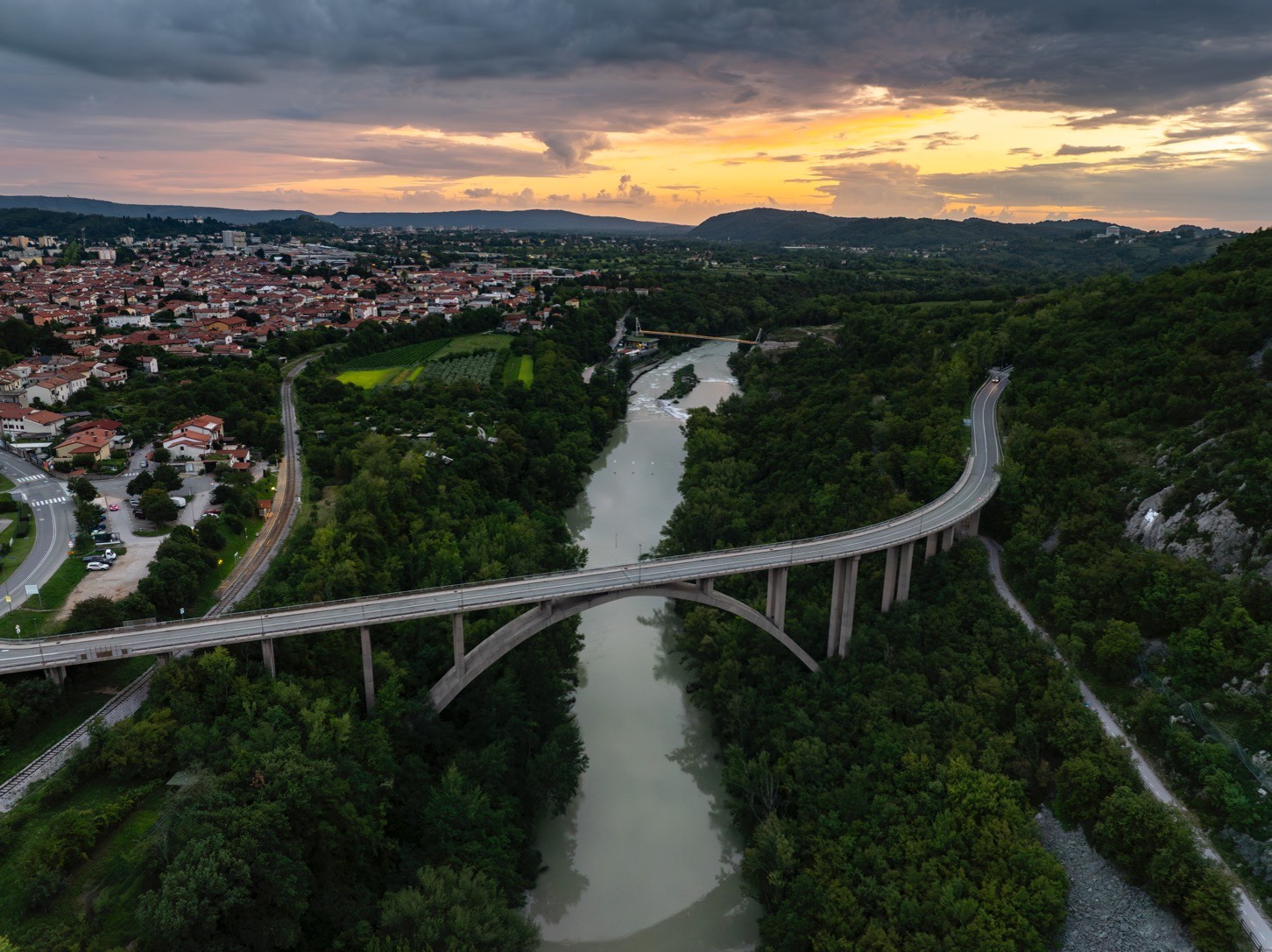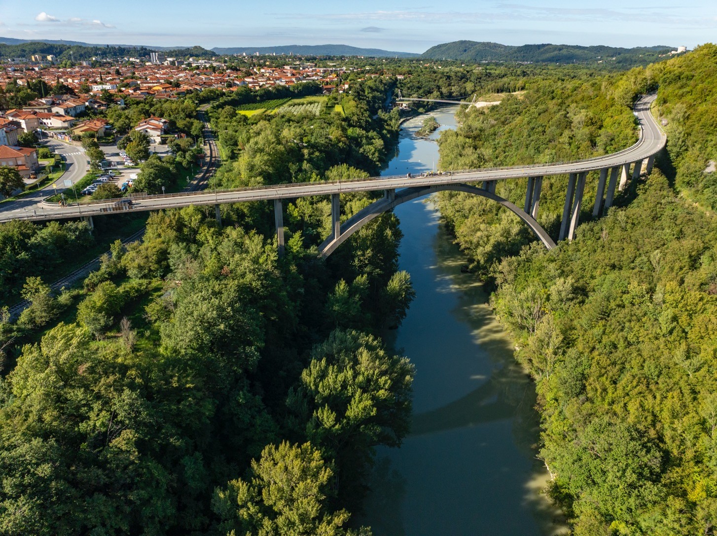 Nel 1985 il ponte ferroviario di Salcano è stato dichiarato monumento di importanza locale ed è in corso il processo per ottenere il titolo di monumento di importanza nazionale. Indipendentemente da questo status, la zona intorno al ponte sta diventando sempre più interessante per vari eventi. Nel 2021, sotto il ponte si è svolto il primo matrimonio nella storia del luogo. Inoltre, nel 2019, il pilota acrobatico Benjamin Ličer ha volato per la terza volta con il suo aereo sotto l’arco del ponte. Il ponte di Salcano è indiscutibilmente il più grande simbolo del Goriziano sloveno e della Slovenia, la cui reputazione può giustamente diffondersi in tutto il mondo. Questa struttura non è solo un punto di riferimento tecnico, ma anche culturale. Durante la sua costruzione originale austriaca e successivamente durante la ristrutturazione italiana, sul ponte si sono intrecciate diverse e ricche conoscenze sulla costruzione del ponte e sulla sua progettazione. Un esempio significativo è rappresentato dall’arco odierno e dalla parte sopra di esso, realizzati da costruttori italiani tra il 1925 e il 1927. Questi elementi portano con sé una serie di metodi architettonici per la modellatura delle pietre e degli archi che erano già stati utilizzati nella costruzione del Ponte di Rialto a Venezia alla fine del XVI secolo. Il ponte incarna quindi un ricco patrimonio culturale derivante dalle tradizioni costruttive ed architettoniche austriache, italiane, francesi e slovene.