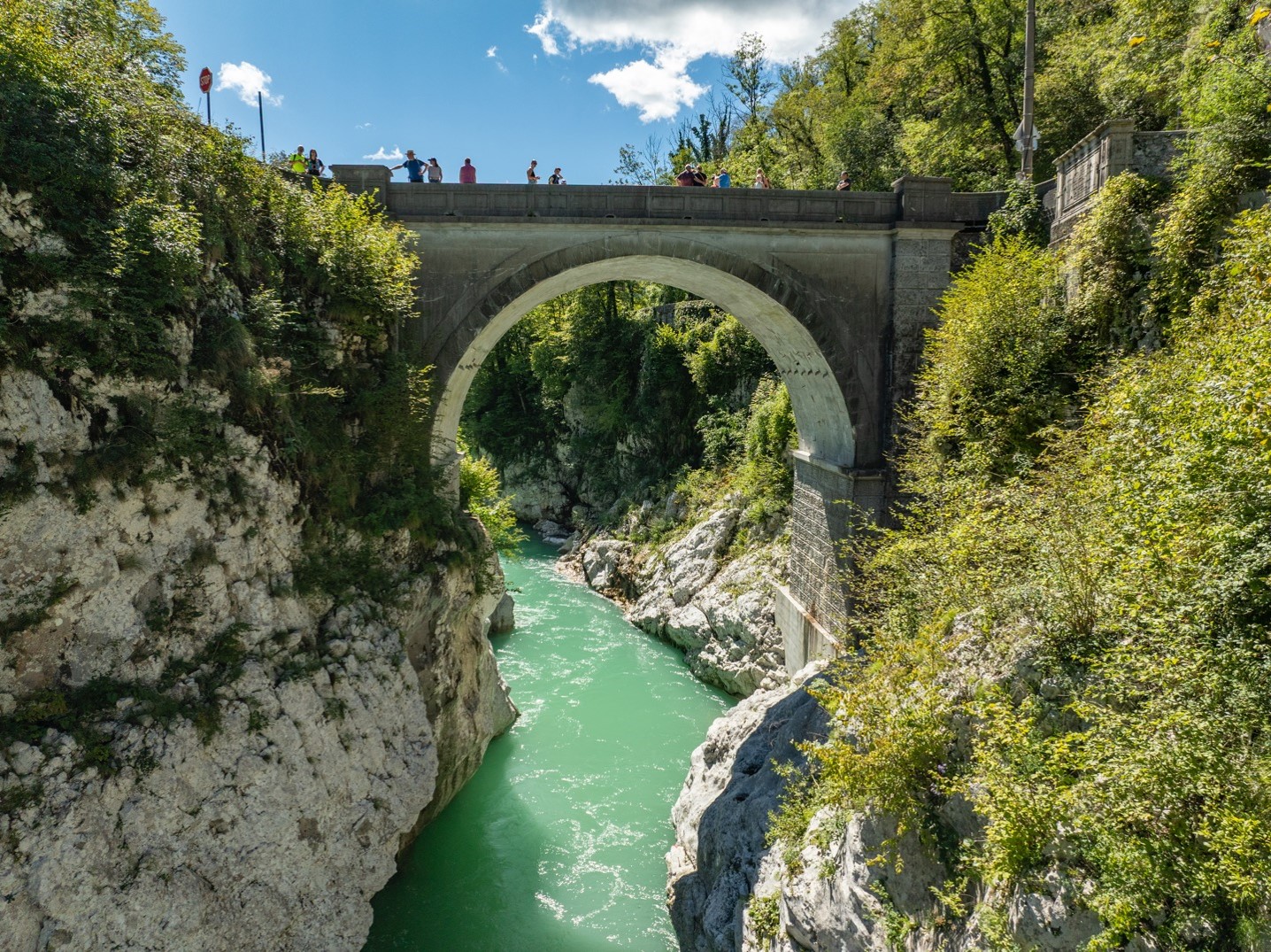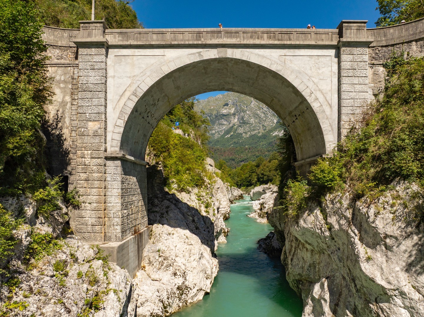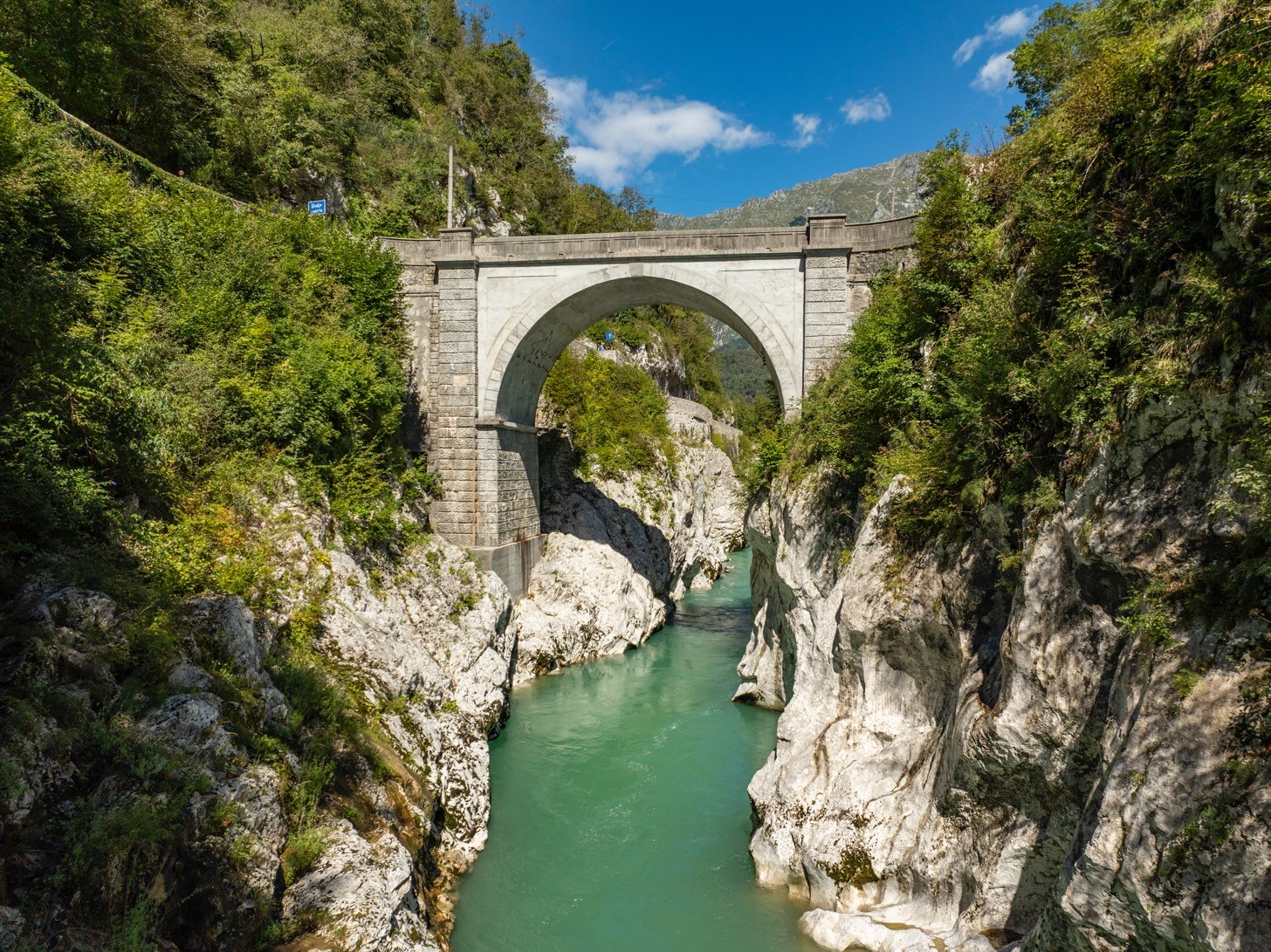 Nella Slovenia occidentale esistono numerosi ponti noti come ponti di Napoleone. Tuttavia, questo nome non indica necessariamente che siano stati costruiti da Napoleone o dai francesi durante le tre occupazioni del territorio sloveno, avvenute tra il 1797 e l’ottobre del 1813. È possibile che questi ponti abbiano preso il nome semplicemente perché furono utilizzati dall’esercito francese o perché furono edificati o restaurati durante il dominio francese, in particolare nel periodo delle Province Illiriche (1809-1813). Le informazioni su queste strutture si basano principalmente sulla memoria collettiva e sulla tradizione popolare.Il Ponte di Napoleone nei pressi di Caporetto è l’unico ponte sul fiume a portare il nome dell’imperatore francese. Questo ponte, di grande importanza per il collegamento tra Caporetto, Drežnica e Smast, non è mai stato parte delle principali rotte commerciali che per millenni attraversavano la Carinzia, il passo del Predil e la valle dell’Isonzo, in direzione di Gorizia e Trieste. Le prime notizie storiche documentano che nel 1616, durante la guerra, i Veneziani demolirono il ponte di legno che loro stessi avevano costruito. Poco dopo, un nuovo ponte in legno venne edificato nello stesso luogo. Lo storico Simon Rutar riporta che nel 1758 il ponte crollò e che due anni dopo, nel 1760, fu ricostruito grazie al contributo dei residenti locali e delle chiese vicine.