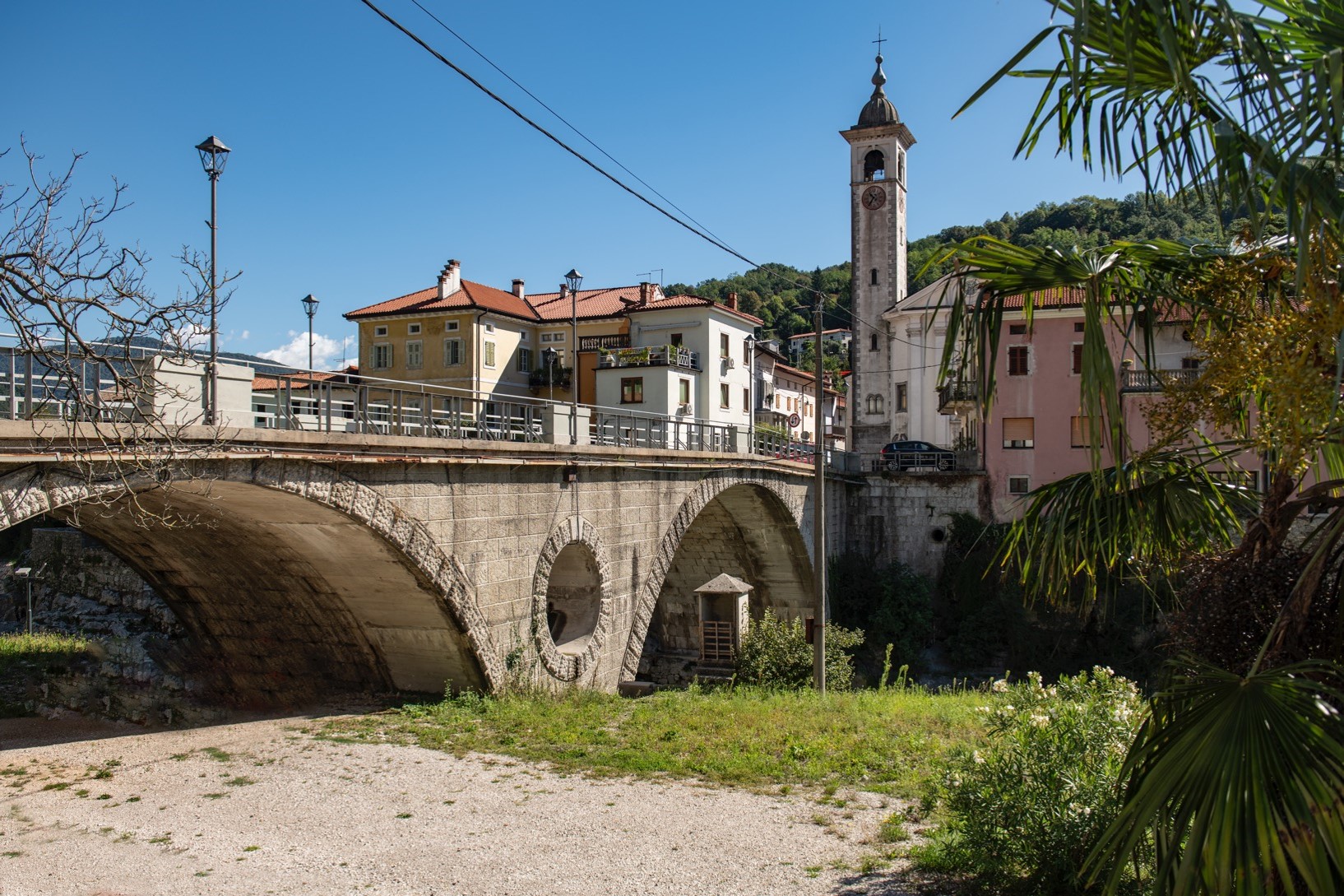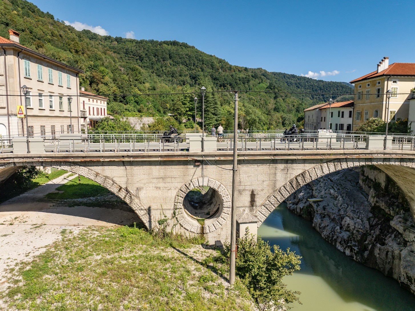 Avgusta 1917 je italijanska vojska zasedla Kanal in na mestu prejšnjega kamnitega mostu najprej postavila visečo brv za prehod pešcev, nedaleč od porušenega mostu pa je italijanska vojska postavila še plavajoč pontonski most. Po končani 1. svetovni vojni je Kanal prešel pod Kraljevino Italijo in oblasti so kmalu pričele z gradnjo novega mostu. V času gradnje novega kamnitega mostu med letoma 1918 in 1920 je bila nekoliko južneje od gradbišča postavljena začasna železna mostna konstrukcija, ki je le za silo omogočala promet preko reke Soče. Od takrat naprej most ni spremenil svoje podobe, prizanesla mu je tudi 2. svetovna vojna kljub številnim zavezniškim zračnim napadom na območje Kanala.