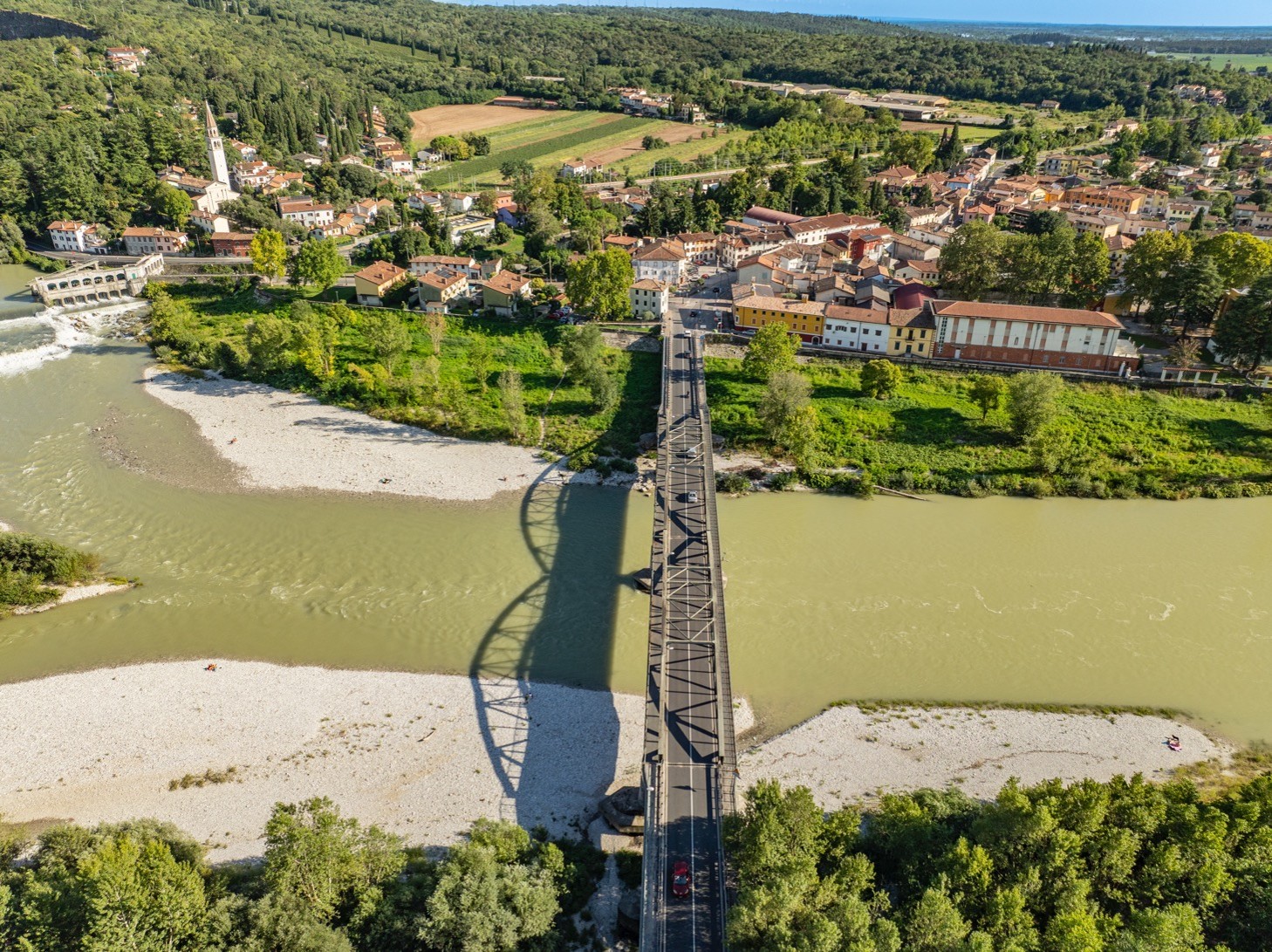 Prvi dokument, ki omenja prehod čez Sočo je datiran z dnem, 31. oktober 1479 in navaja »prehod s čolnom« (passo della barca). Leta 1837 je bil na strani Zagraja zgrajen prvi most, ki je imel 15 razponov po 9,6 metra in širino 5,06 metra. Drugi del mostu, na strani proti Gradišču je bil namenjen le za pešce.