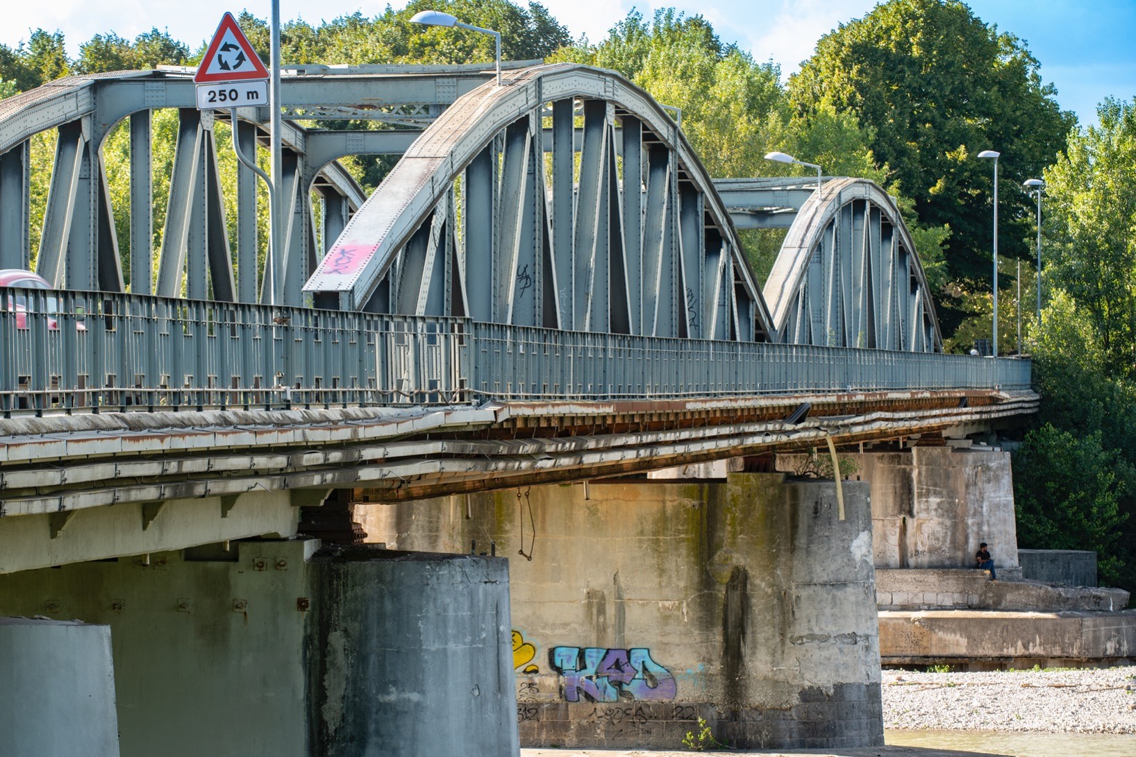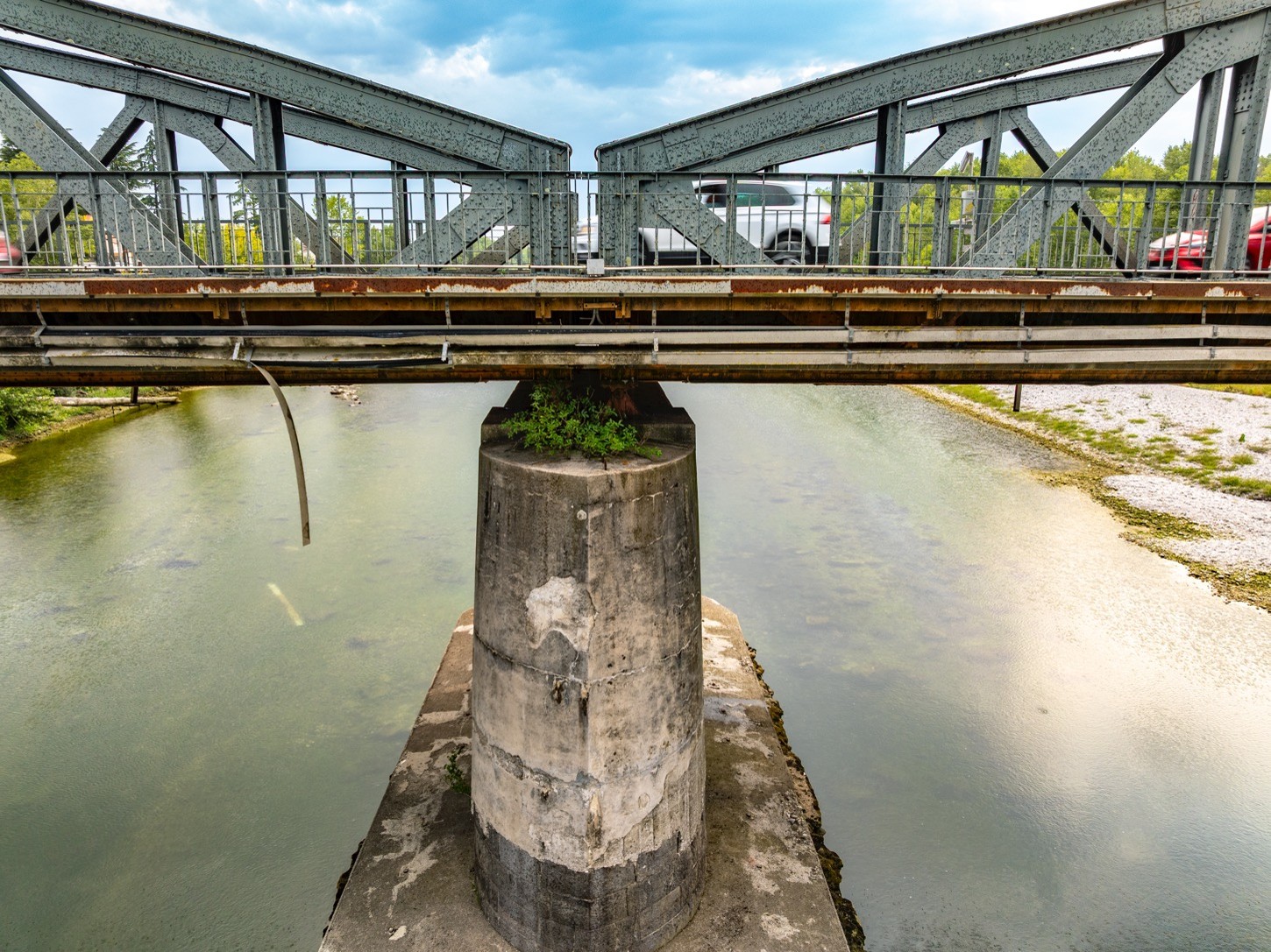 Skupna dolžina: 231 m, trije razponi s kovinsko konstrukcijo, vsak po 50,55 m. Temelji so narejeni iz lesenih pilotov dimenzij 30 x 30 cm in dolžine 5 m, s kovinskimi konicami, vgrajeni v en meter globoko kompaktno prodnato podlago.Temeljna baza meri 11 x 4 m in je betonska. Steber meri 12 x 3 m in je visok 6 m ter zgrajen iz kamnitih blokov iz Nabrežine, dimenzij 70 x 50 x 50 cm, s polnilom iz armiranega betona. Vozišče, široko 6 m, je izdelano po sistemu Monier: prečne nosilce v obliki profila L, višine 60 cm, v medsebojni razdalji 4,25 m, dopolnjuje 6 vzdolžnih nosilcev tipa Eisen 131, višine 320 mm, razmaknjenih na 1 m. Voziščna plošča je iz armiranega betona debeline 20 cm.