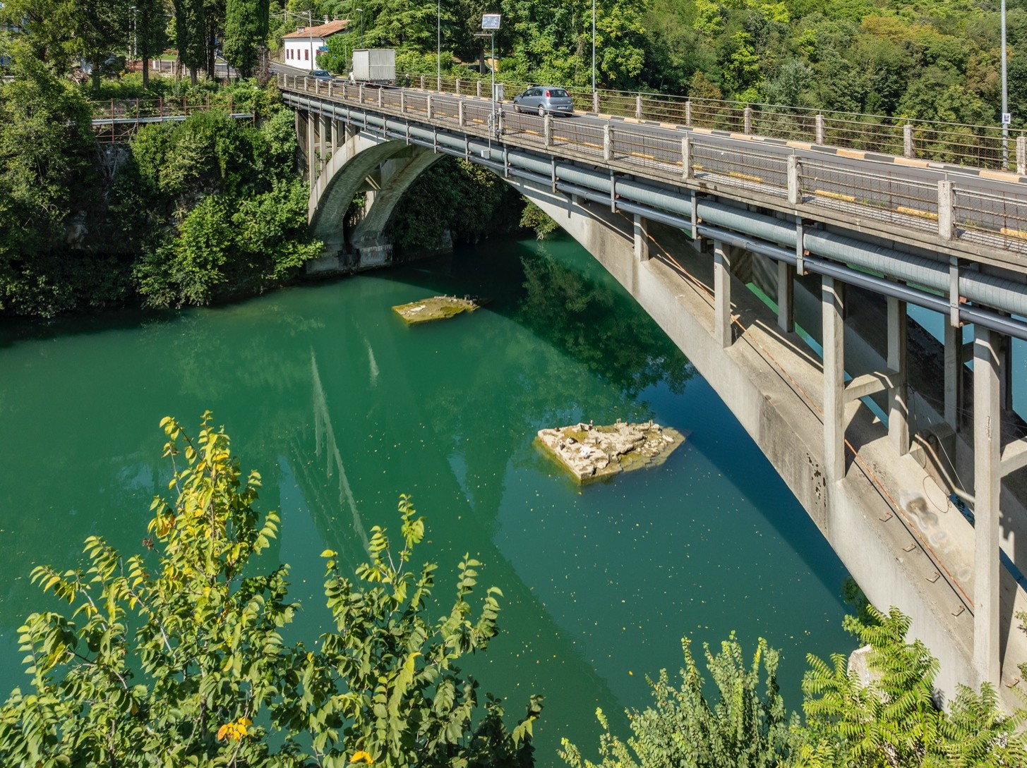 Most je ohranil svojo mešano strukturo iz kamna in lesa vse do prve svetovne vojne, ko so železničarji vojaškega inženirskega oddelka italijanske vojske zamenjali ploščad, ki jo je uničila avstro-ogrska vojska. Vgradili so kovinske preklade tipa Scarelli. Leto kasneje je bil most popolnoma uničen, ponovno s strani Italijanov, ki so bežali po porazu v bitki pri Kobaridu (Caporetto). Po koncu prve svetovne vojne je 8. armada nadaljevala z obnovo stebrov in podpornikov ter zgradila novo železno ploščad. Z vidika statike je Pevmski most do leta 1945 uvrščen med klasične mostove s prečnimi prekladami, pri katerih so ploščadi podprte z vzdolžnimi tramovi, ki slonijo na podpornikih in osrednjih stebrih. Ta vrsta mostov; z zelo preprostim načrtom in uporabo srednje-majhnih razponov, je znana že iz antike in je značilna po glavni strukturi, ki jo sestavljajo ukrivljeni elementi, torej elementi, ki delujejo kot upogib v vzdolžni smeri