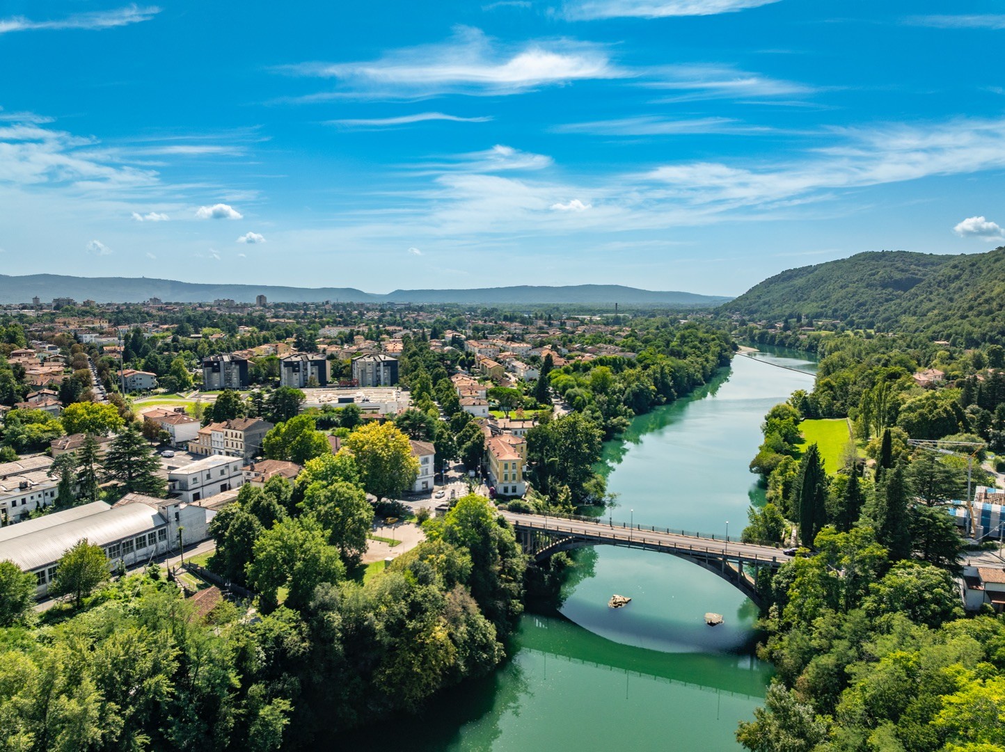 Ko je bil Oglejski patriarh poražen, je leta 1420 Benečija zasedla Furlanijo in hitro razširila svoje ozemlje proti vzhodu, tako da je leta 1473 ustanovila trdnjavo Gradež ob Soči, na ozemlju, ki je bilo teoretično podrejeno grofiji. Leta 1496 je grof Leonard Goriški zato dal zgraditi stolp na desnem bregu Soče za obrambo mostu, ki je tudi botroval kasnejšemu imenu tega kraja »Pri stolpu«.